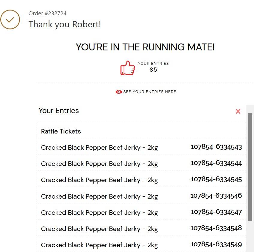 You'll recieve 5 RAFFLE ENTRIES for every 250gm bag you purchase .i.e 500gm = 10 Raffle Entries ( 2 x 250gm bags).