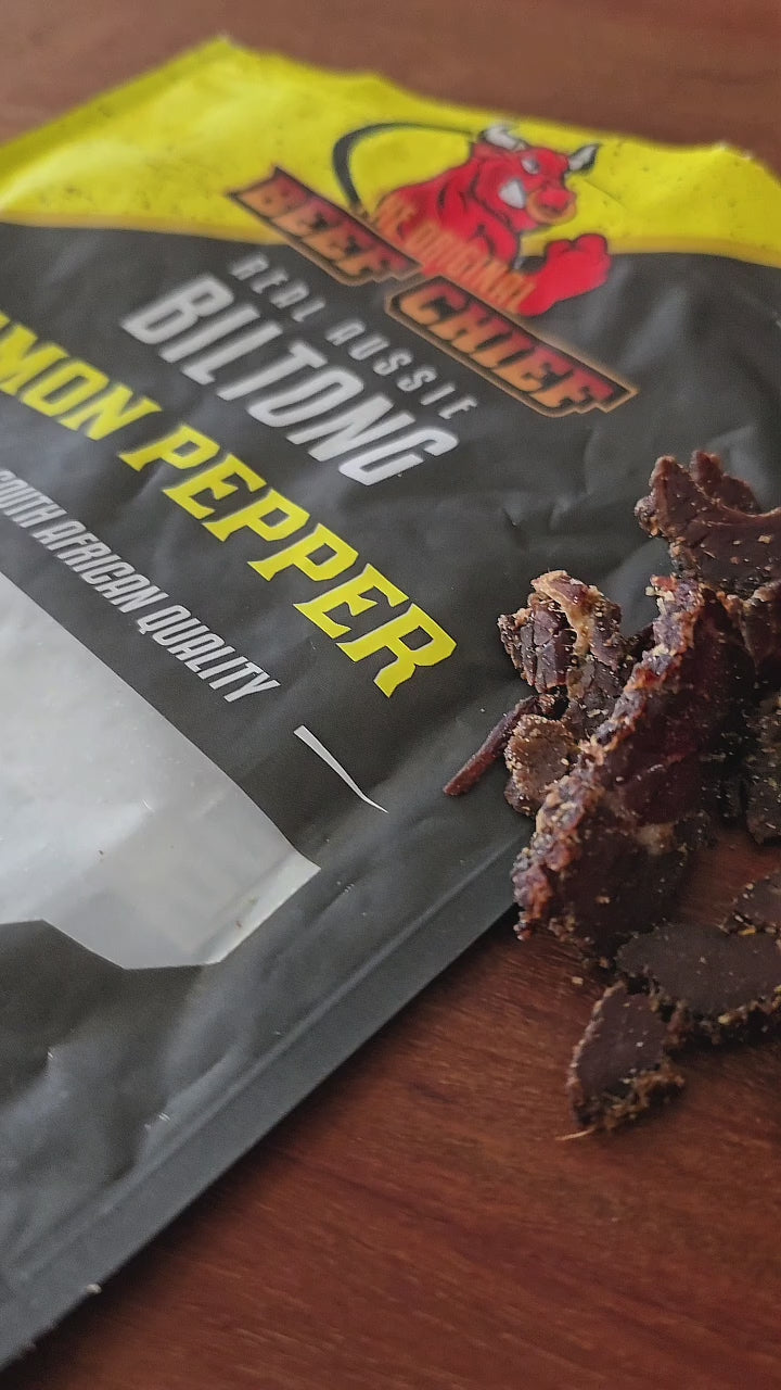 Made from premium Australian beef and air-dried the traditional way. Thin slicing keeps the biltong tender and allows the lemon pepper seasoning to coat each piece evenly for consistent flavour.